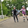 De Combibaan was prachtig versierd en verdeeld in twee delen: een buitenbaan voor de oudere kinderen en een binnenbaan voor de jongere deelnemers. In totaal deden er 28 kinderen mee, waarvan 14 op de buitenbaan en 14 op de binnenbaan. Terwijl de oudere kinderen hun rondjes maakten op de grote baan, skeelerden de jongere kinderen een korter parcours binnen.