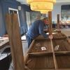 Verbouwing clubgebouw vordert (2) Er is opnieuw hard gewerkt aan het clubgebouw. Nu staan de prachtige nieuwe tafels op hun plek. 14-4-2018 Vandaag hebben Bart Jongman, Kees Jongman en Bob Groenewoud de nieuwe tafels voor ons clubgebouw opgehaald. Het zijn prachtige teakhouten tuintafels, via Bart gesponsord door Mondial Living. De tafels konden gratis ter beschikking worden gesteld omdat ze met een klein gebrek zijn teruggestuurd door klanten. De mannen hebben ze met kundige hulp van Edie Bruns gerepareerd en in elkaar gezet. Verder heeft Hans Grootenhaar afgelopen week nog het ontbrekende gordijntje gehaald en opgehangen en heeft Laurens geprobeerd om het installatiewerk af te ronden. Helaas was op dat moment de kantine in gebruik, dus dat werk moet nog afgemaakt worden. Ilona heeft (gratis) een mooi vloerkleed geregeld dat we nu onder de stamtafel hebben gelegd. 7-4-2018 Hans Grootenhaar, André van de Berg, Bob Groenewoud en Laurens Klaas van Elka Install hebben vandaag hard gewerkt in het clubgebouw. Er is zonwering aangebracht en na veel gepuzzel hebben we de lampen opgehangen waar straks de nieuwe tafels komen. Het wordt steeds mooier! Bob Groenewoud zaterdag 7 april 2018 Aantal weergaven (5079) Mocht u het niet eens zijn met de publicatie van een foto kunt u dat per e-mail kenbaar maken aan de webmaster (webmaster@hijc.nl). De foto wordt dan zo snel mogelijk verwijderd.