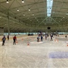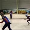 We begonnen de wedstrijd met twee 100 meter banen voor de kids die normaal op de ijshockeybaan schaatsen. De jeugd die normaal op de 400 meterbaan schaatst kon op de binnenbaan inrijden wat er erg gezellig uit zag.
