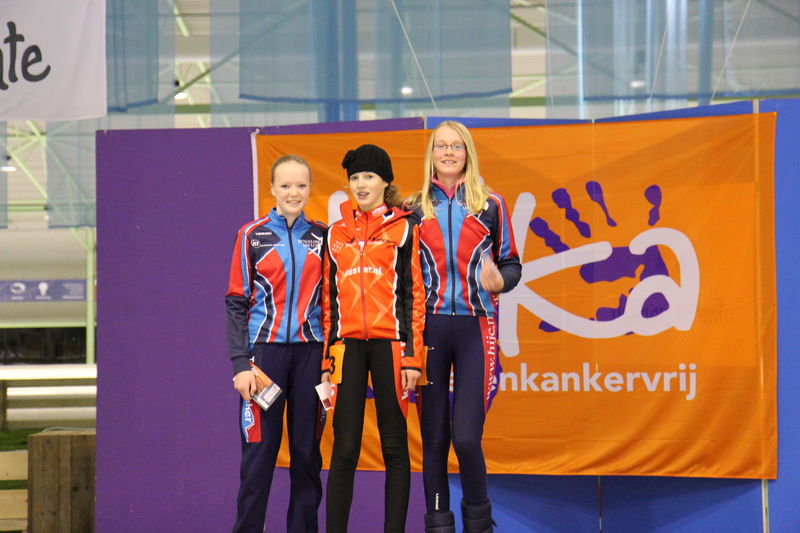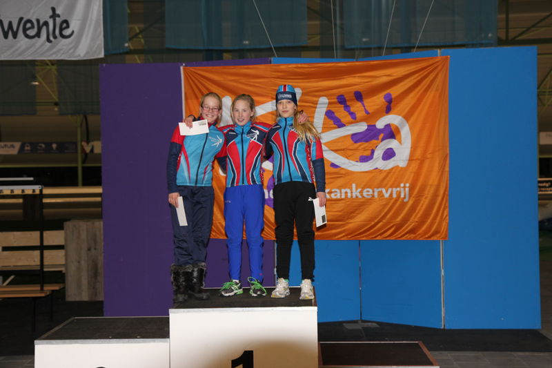 Bij de meisjes junioren C wist Fenne Keulstra een spannende strijd net niet te winnen en kon zodoende een zilveren medaille ophalen. Bij de meisjes junioren B was er net als op het gewestelijk kampioenschap sprint een spannende strijd tussen Maaike Laagland en Nienke Kleinsman. Waar Nienke het sprinttoernooi op haar naam wist te schrijven verraste Maaike vriend en vijand door in Deventer een pr van twee seconde op de 1500 meter te rijden. Samen met een goede 500 meter was dat voor Maaike genoeg om als gewestelijk kampioen naar huis te gaan. Een hele mooie prestatie aangezien ze drie gewestelijk rijders en haar ploeggenootje Anouk Sanders (5e) achter zich wist te laten.