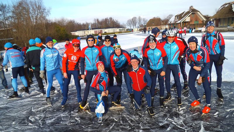 Rond een uurtje of 10 kunnen we dan eindelijk aan de merentocht beginnen. Het ijs is niet slecht, maar door de mensen massa's vooral in de smalle kanaaltjes, komen er scheuren en dus water op het ijs. We kunnen ter nauwernood onze voeten droog houden. Op de Wieden aangekomen, gaat het weer heerlijk, er gaat niets boven zwart natuurijs. Ik ben in gezelschap van heel wat jaren schaatservaring. Ook een aantal natuurijsmeesters van HIJC is van de partij. Zij hebben de nodige uren gewerkt om schaatsen op de combibaan mogelijk te maken. We kennen het resultaat. Langs deze weg een pluim voor onze noeste werkers.