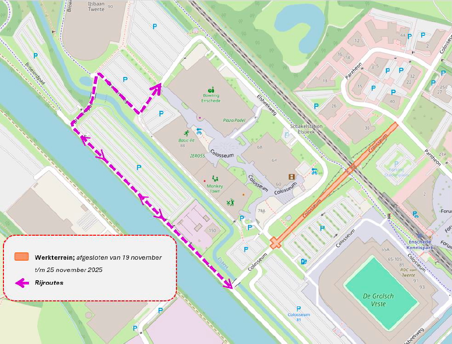 Van 19 t/m 25 november worden asfaltonderhoudswerkzaamheden uitgevoerd aan het Colosseum, vanaf het Pantheon tot en met het kruispunt naar de Elsbeekweg.