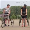 Vorige maand hebben Martin, Cora en Gerlinda voor het eerst getraind met de Racerunners. Een Racerunner is een driewielfiets zonder pedalen maar met een borststeun waarmee mensen die in het dagelijks leven gebruik maken van een rollator, rolstoel of scootmobiel voor mobiliteit kunnen lopen en rennen. Helaas was Nicole de eerste training nog niet aanwezig omdat zij deze week deelnam aan de rolstoelvierdaagse.