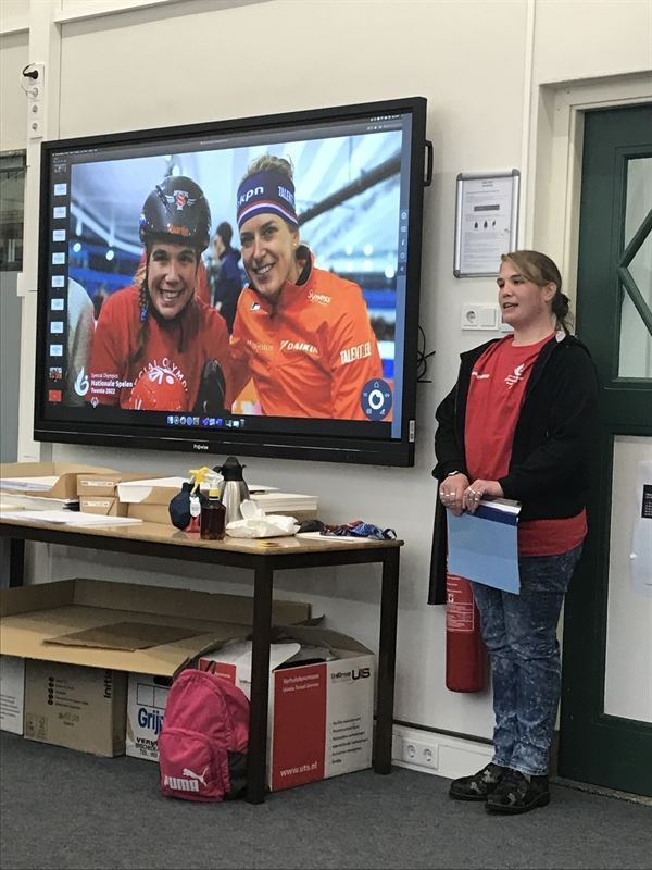 Tijdens haar presentatie aan de studenten van het 2e leerjaar Fotografie vertelde Maartje samen met Nastaja Bruers, Bas de Zeeuw en Maaike Heethaar over wat de Special Olymics zijn. En liet ze naast haar medailles ook veel foto's een filmpjes zien. De studenten stelden veel vragen en kregen ook de opdracht mee om de sporters vast te leggen in het 'perfecte plaatje' waarbij doorzettingsvermogen zichtbaar is. Uiteraard zal Maartje ook deel uitmaken van de jury die de taak heeft dit perfecte plaatje te selecteren.