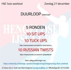 Droogtraining Workout zondag 27 december zondag 27 december 2020 Na 2 dagen lekker eten en drinken gaan we vandaag wat extra calorieën verbranden en de buikspieren weer wakker schudden ;-) Begin de training met een lekker extensief duurloopje om vervolgens af... Workout zondag 27 december
