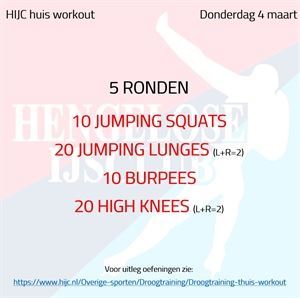 Droogtraining Workout donderdag 4 maart woensdag 3 maart 2021 Jump around! 5 Ronden lang sprongwerk. Succes! Workout donderdag 4 maart