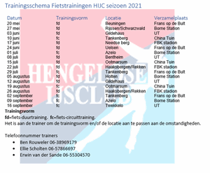 Nieuws, Zomer 2021 Inschrijven Wielertocht 25 september maandag 13 september 2021 Zaterdag 25 september organiseert de HIJC een prachtige, sportieve wielertocht. Met aansluitend een lekkere pastamaaltijd! Een prachtige afsluiting van het zomerseizoen! Je kunt kiezen uit twee... Inschrijven Wielertocht 25 september