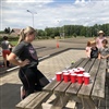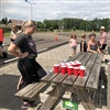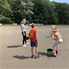 In de middag moesten de kinderen weer aan de bak met een spellenparcours op de combibaan. Het was ondanks de matige voorspellingen de hele dag prachtig weer, dus de waterspelletjes waren een goede gelegenheid om elkaar eens flink nat te maken. Tussendoor hebben we nog een lekker ijsje gegeten.
