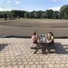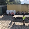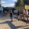 Het is altijd leuk bij zo'n dag om te zien hoe de kinderen zelf dingen organiseren als er een uurtje niets georganiseerd wordt. Er was een springkussen waar een aantal natuurlijk niet weg te slaan waren, maar er werden ook spelletjes gespeeld, gestoepkrijt en werd er in groepjes lekker gekletst.