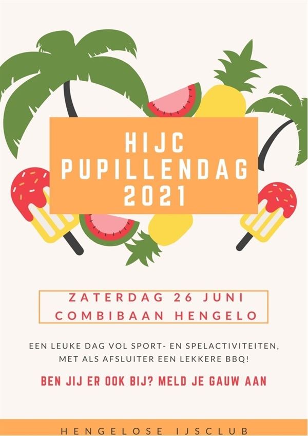 Er zal op zaterdag 26 juni van 11:00-21:00 een leuke en actieve dag worden georganiseerd voor alle pupillen. Uiteraard volgen we daarbij de richtlijnen van het RIVM. Lunch wordt verzorgd en 's avonds gaan we genieten van een heerlijke barbeque. De kosten bedragen 10 euro per kind.
