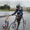 De afgelopen weken waren we helaas niet altijd compleet en werd duidelijk dat we toch een wat kwetsbaarder groepje zijn met elkaar. Zo kon Michel de griep maar niet de baas worden en was Cora letterlijk en figuurlijk met de deur in huis gevallen. Nicole bleek nadat ze op wegwerkzaamheden was gestuit over een wat minder goed richtingsgevoel te beschikken, wat resulteerde in te laat voor de training en een lege brandstoftank. Martin en Michel moesten beiden geopereerd worden maar inmiddels is dat achter de rug en is Martin er gelukkig alweer bij. Ditzelfde hopen we ook snel voor Michel. Afgelopen zaterdag was het echter wel een drukte van belang bij de combibaan en dat ondanks dat het een koude, gure novembermorgen was. Ook kwam er nog een nieuwe belangstellende langs om de racerunner te proberen en deze dame was erg enthousiast over de mogelijkheden ervan, dus we hopen haar ook gezellig bij onze groep te verwelkomen. Verder kreeg Cora haar fanclub op bezoek in de vorm van dochter, schoonzoon en kleindochter om haar aan te moedigen. Natuurlijk wilde de kleindochter van Cora wel een wedstrijdje tegen oma doen op de loopfiets.
