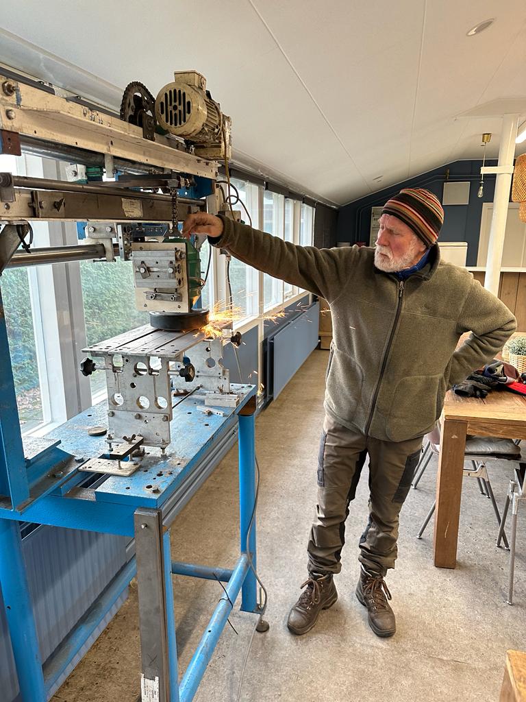 De machine is gemaakt door Gerard Bootsveld. Op dit moment zal de machine in bedrijf gesteld worden, zodra deze helemaal geprepareerd is kan deze gebruikt worden. Binnenkort kunnen leden tegen een kleine vergoeding weer een perfecte ronding in de schaatsen laten slijpen.