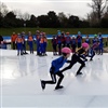 Bij aannkomst op de buitenbaan (wat zijn wij toch verwend met onze overdekte ijsbaan in Enschede) bleek het flink te regenen en dachten de kinderen dat de wedstrijd wel uigesteld zou worden. Maar er werd gewoon gestart, daar keken enkele wel een beetje vreemd van op. Dat ze toch gestart zijn was achteraf best wel stoer. Doorweekt kwamen ze de baan af na de eerste afstand. Mart zegt daarover: 'Ik zag niks, want ik moest alleen maar knipperen.' Gelukkig werd het na de eerste afstand droog en konden ze de tweede afstand en de estafette droog afleggen. Wat een beleving was dat. Deze dag zullen Eloise van der Sligte, Esmee en Thomas Hesselink, Ahmad Hafeez, Evelien Gosselink, Elisa Stenvers, Tom Kromhout van der Meer en Mart Polman nog lang onthouden.