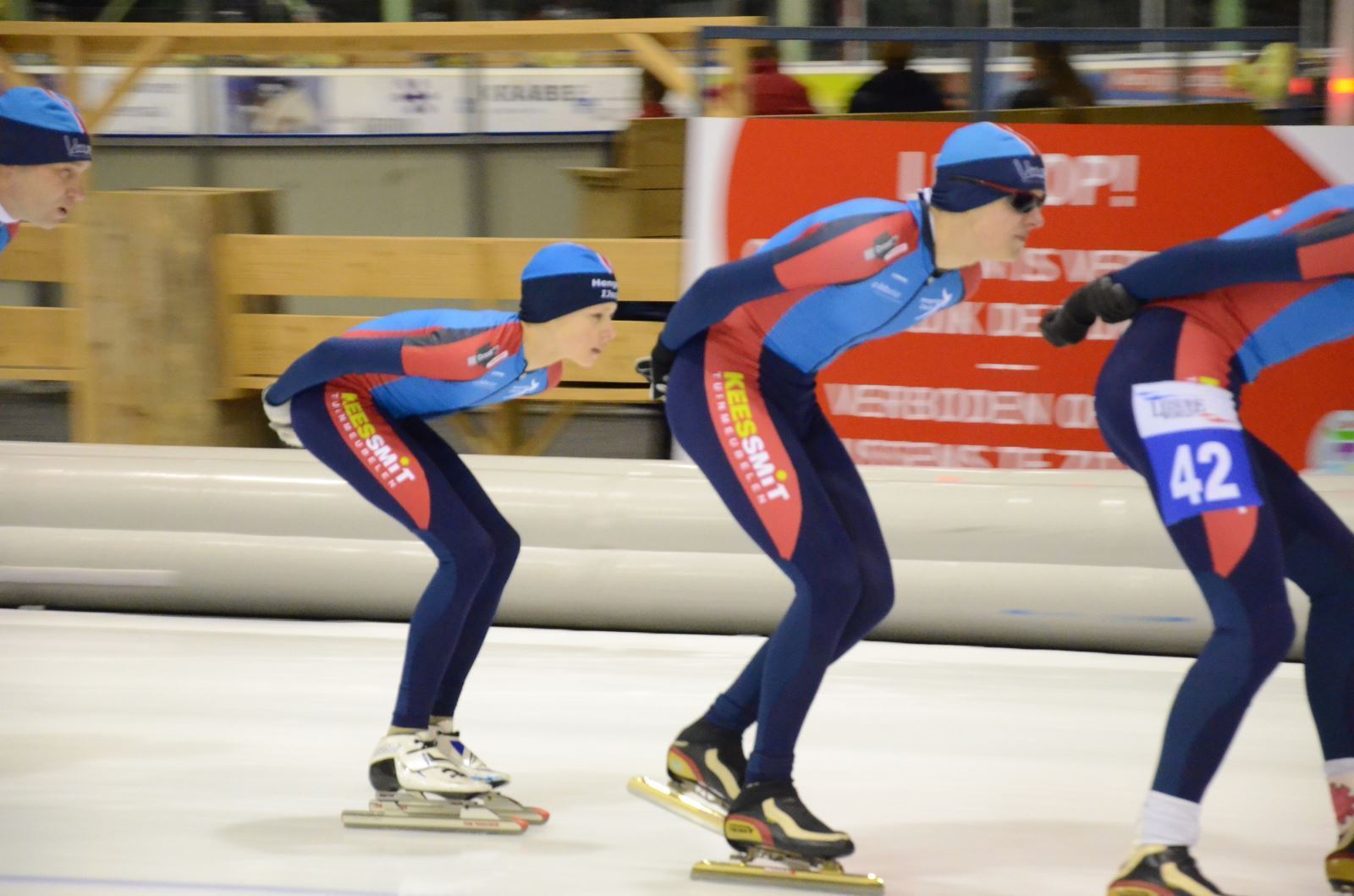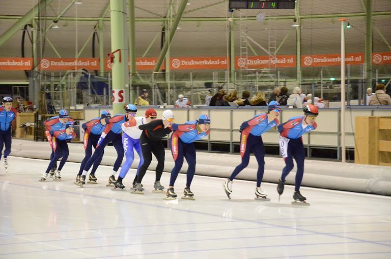 Zo bij de start om me heen kijkende wist ik al dat mijn rol (als enige 50+ er) beperkt zou blijven tot de eerste ronde van 16. Bij de start moest ik al alle zeilen bijzetten en gaande weg de eerste ronde kreeg ik het idee om op het rechte eind maar volle bak te gaan in de hoop toch nog ergens op kop te mogen rijden. De groep heeft mij 1 ronde kopwerk gegund, waarna Ruben Blenk een demarrage plaatse waardoor ik meteen op de juiste plek werd gezet. De laatste. Ik mocht toch nog 9 ronden volbrengen voordat ik door de hele groep werd gedubbeld. Je kunt je voorstellen dat ik van het wedstrijd verloop na de 2e ronde niet meer meekreeg dan dat wat de speaker vertelde, De winnaar is me ontgaan maar er was een pupil bij (Bas Huttenhuis) die toch mee kon komen met de grote jongens.