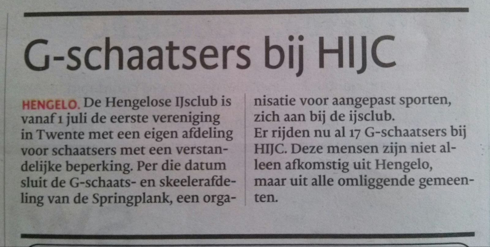 De Hengelose IJsclub is vanaf 1 juli 2015 de eerste vereniging in Twente met een eigen afdeling voor schaatsers en skeeleraars met een verstandelijke beperking.