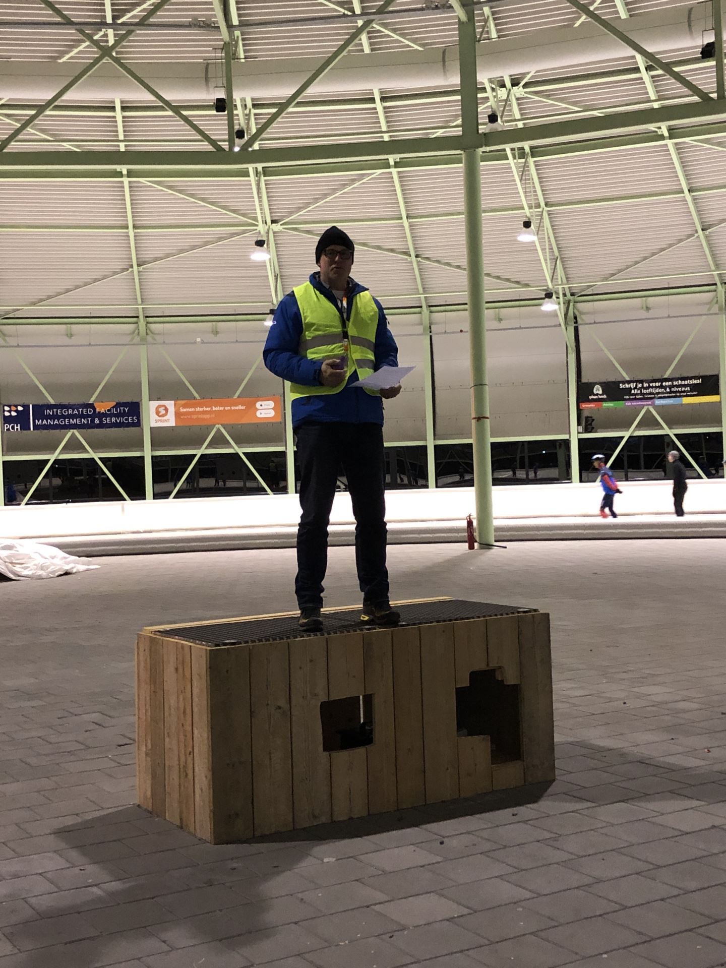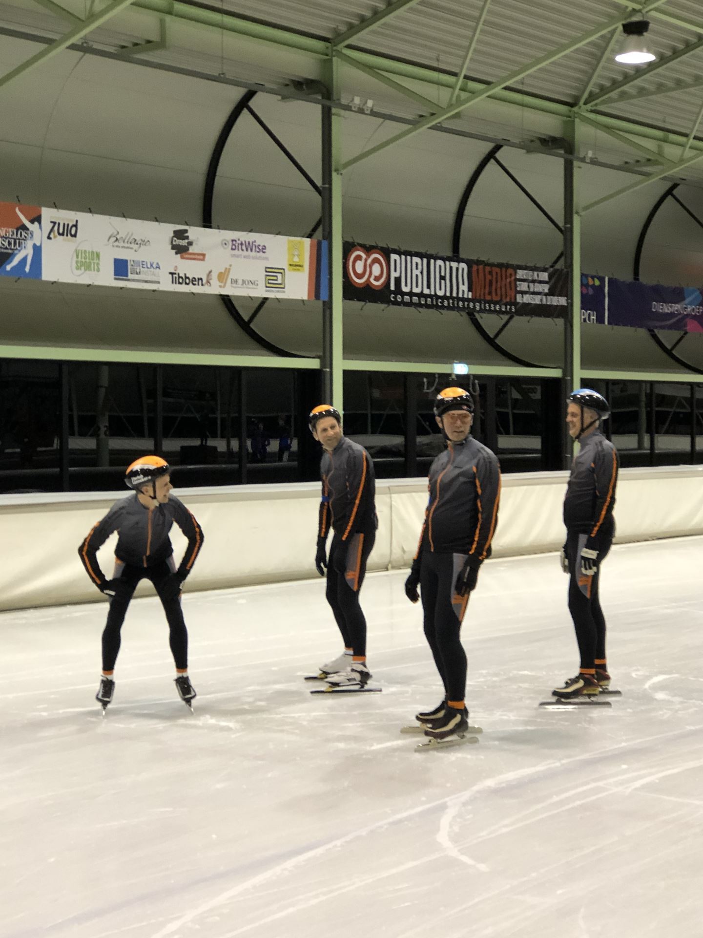 De teams bestaande uit 3 of 4 schaatsers reden deze avond 2 omlopen van 4 ronden waarbij de tijd van de 3e schaatser telt. Er moest wat geïmproviseerd worden aangezien er geen beschikking was over een officiële starter en jury. Hoofdstarter Edwin Tiben ging daarom op een schavot staat en floot de teams vervolgens weg met een carnavalsfluitje. Maar dat drukte de pret niet, onder het genot van feestelijke apres-ski muziek werd er fanatiek gestreden door jong en oud, talent en minder getalenteerden.