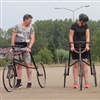 Vorige maand hebben Martin, Cora en Gerlinda voor het eerst getraind met de Racerunners. Een Racerunner is een driewielfiets zonder pedalen maar met een borststeun waarmee mensen die in het dagelijks leven gebruik maken van een rollator, rolstoel of scootmobiel voor mobiliteit kunnen lopen en rennen. Helaas was Nicole de eerste training nog niet aanwezig omdat zij deze week deelnam aan de rolstoelvierdaagse.
