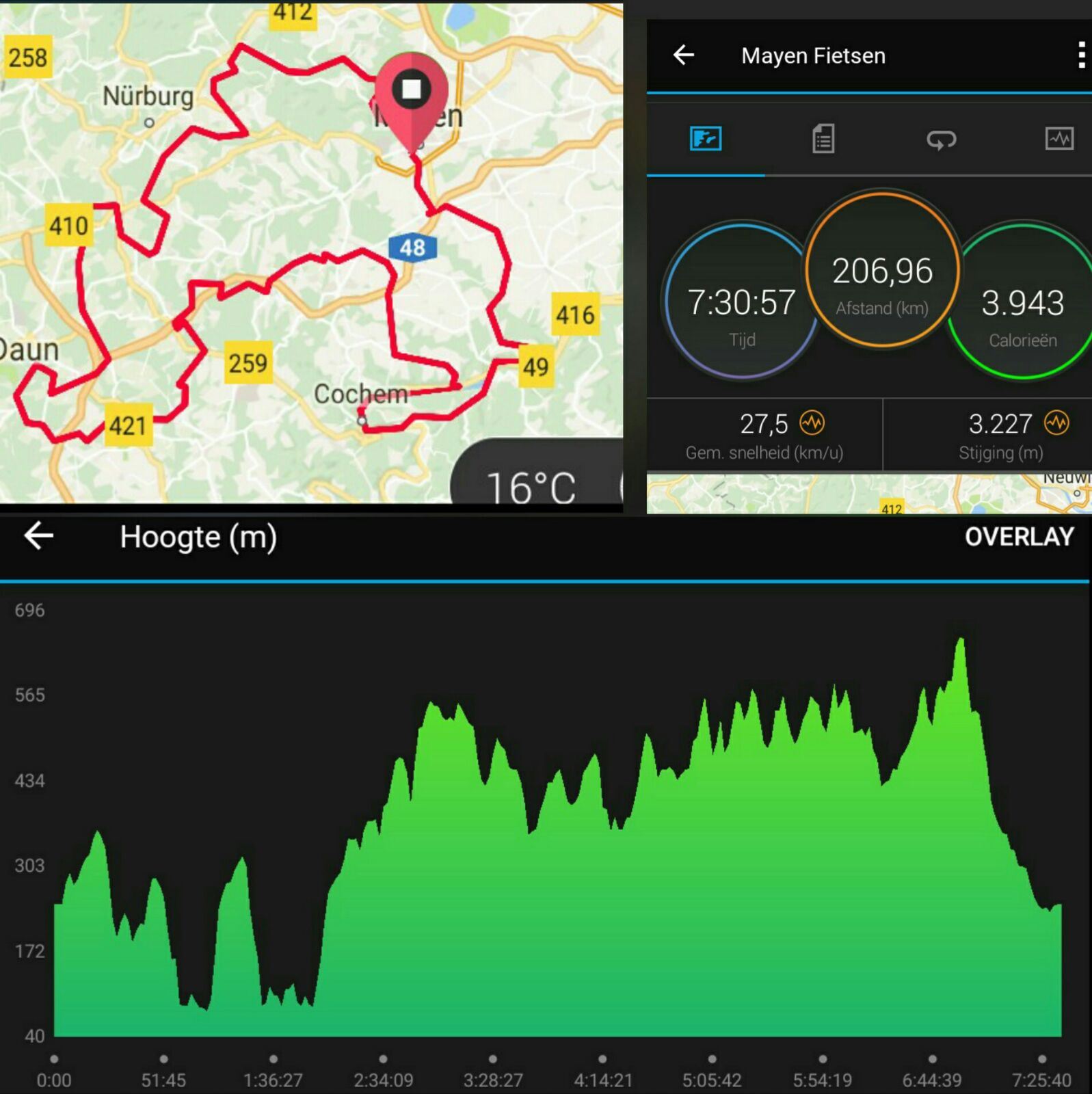 Helaas heeft niet iedereen de tocht kunnen uitrijden. Na 60 km werd er door een lid van onze groep een inschattingsfout gemaakt tijdens het afdalen met als gevolg straateczeem en een kapotte fiets. Gelukkig was dit het enige wat hij eraan overhield en kon hij opgehaald worden door de begeleiding.