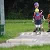 Een van de laatste klus-acties was de aanleg van een gloednieuw en uniek hindernisbaantje op het middenterrein van de combibaan. Op deze baantje kan de behendigheid bij het skeeleren op de stoep mooi geoefend worden.