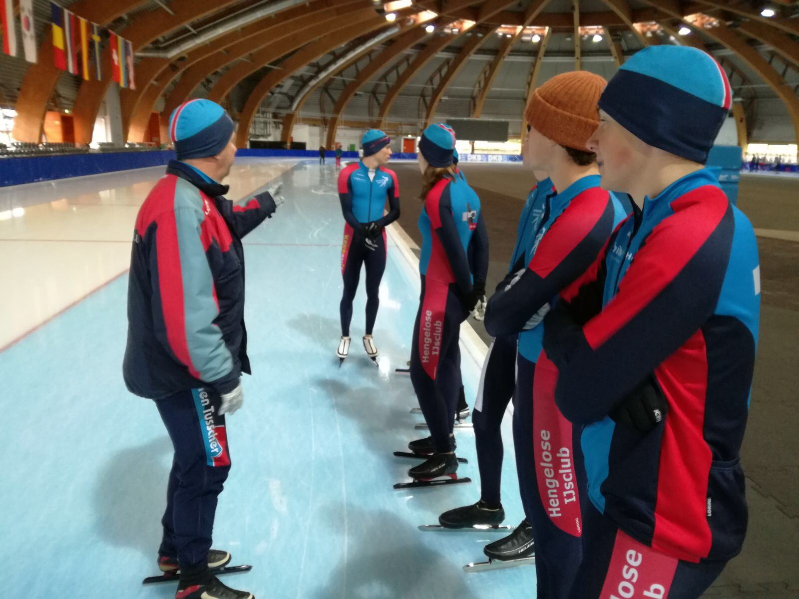 Maandag was het weer tijdig op om te gaan trainen. Omdat we om 10 uur op het ijs kunnen, is het ontbijt rond 8 uur, best luxe op zich. Dan klaar maken en zo’n twintig minuten wandelen naar de ijsbaan. Beetje inlopen, rekken en strekken en gaan met die banaan. De meeste rijders klaagden toch wel over zere benen na een weekend van wedstrijden, maar er is goed getraind zowel in de ochtend als in de middag. Aan inzet geen gebrek.