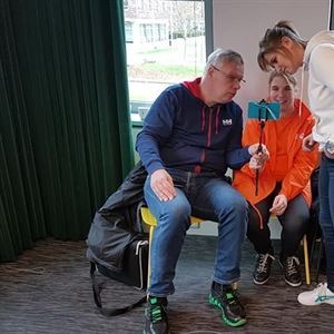 Dus met een grote groep rond de tafel in het clubgebouw werd er eerst een kop koffiegedronken en even kennisgemaakt met elkaar. Vervolgens begonnen we aan de warming-up onder leiding van Herman. Daarna sprongen we allemaal op onze racerunner om aan de training te beginnen. Voor de nieuweling moest er nog even wat versteld worden aan zadel en borststeun, dus ook Henk moest nog even in de baan, maar uiteindelijk was iedereen aan de gang. Maartje en Gerlinda werkten zich flink in het zweet, met rode wangen van de kou en inspanning liepen zij rondjes en deden oefeningen en sprintjes. Cora was inmiddels rondjes aan het draaien met haar kleindochter in haar kielzog en het was geweldig om te zien hoe dit kleine schatje fanatiek op haar loopfietsje met oma haar rondjes deed.