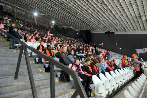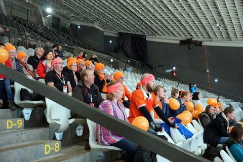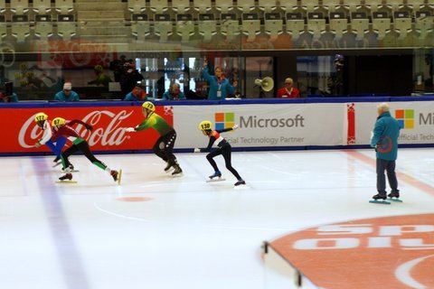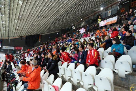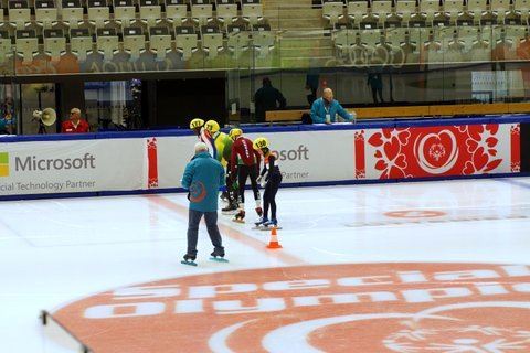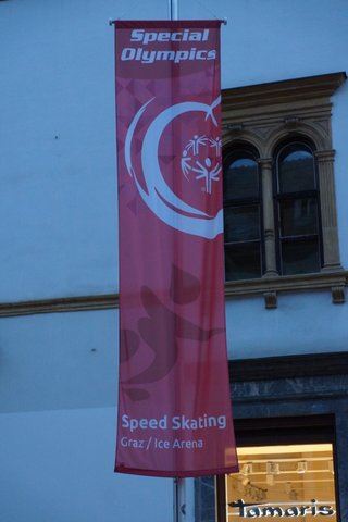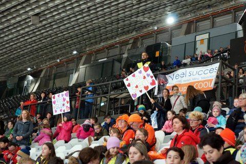 Leuk om te zien hoeveel supporters er vandaag waren in de ijshal. Naast hele schoolklassen met Oostenrijkse kinderen was er ook een groep studenten uit Den Haag die hun studiereis in het teken van de Special Olympics hebben gedaan. Gisteren zijn ze bij het skien wezen kijken en vandaag waren ze aanwezig bij het shortrack.
