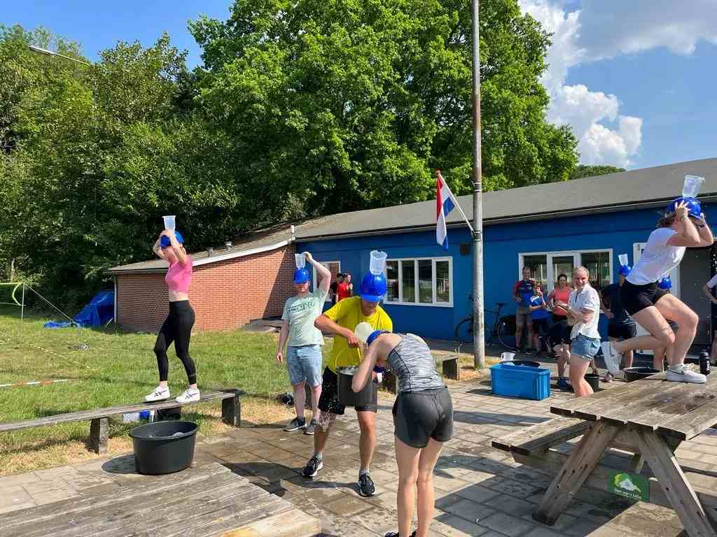 Bij mooi weer streden zes teams tegen elkaar bij vijf verschillende spelletjes. Vooral het steppen op een step voor 4 personen was behoorlijk zwaar door het fanatisme waarmee iedereen ze over de baan gingen. Gelukkig kon er ook afkoeling worden gezocht bij het waterparcours waarbij de teams in estafette zoveel mogelijk water moesten verzamelen.
