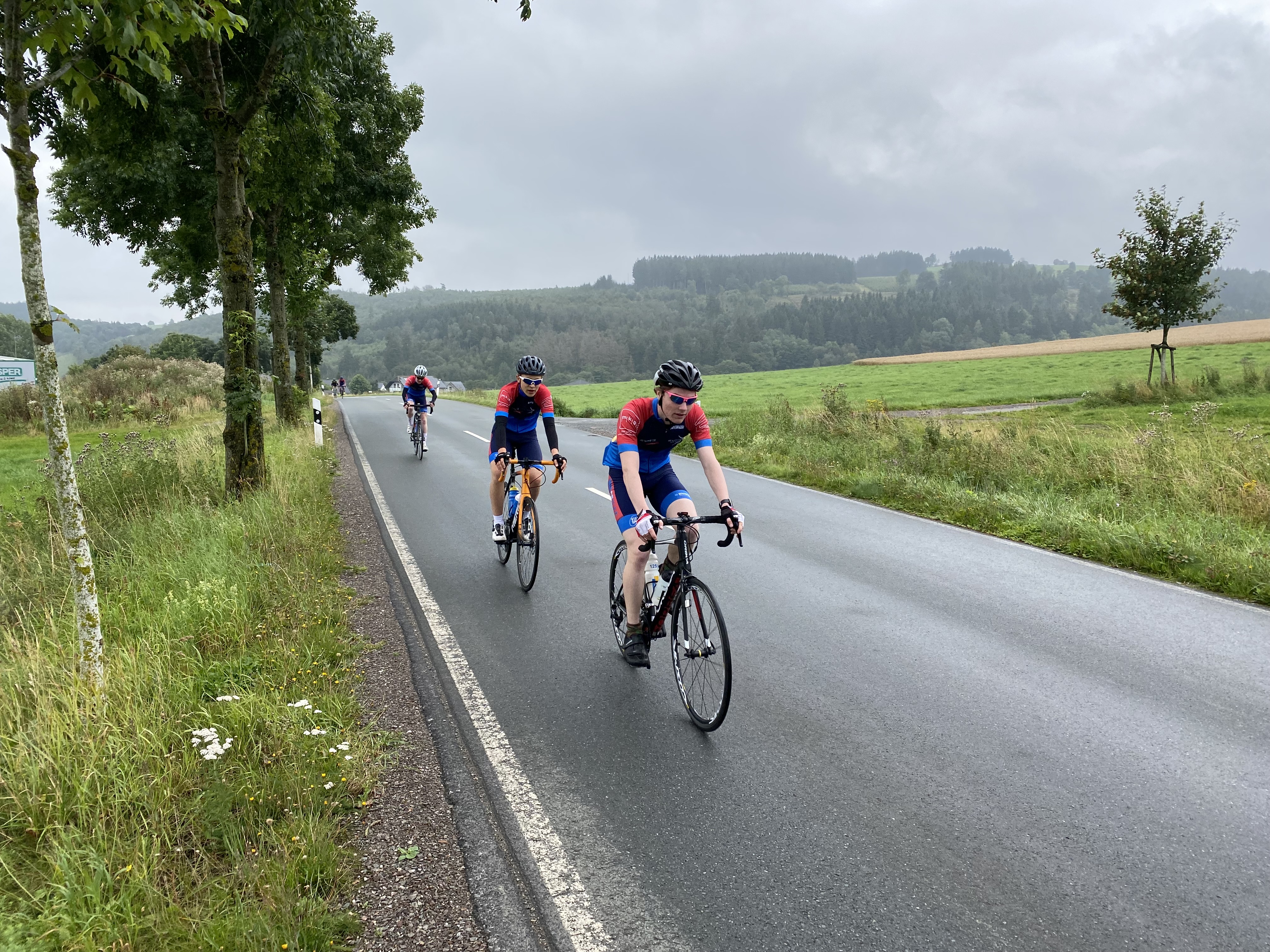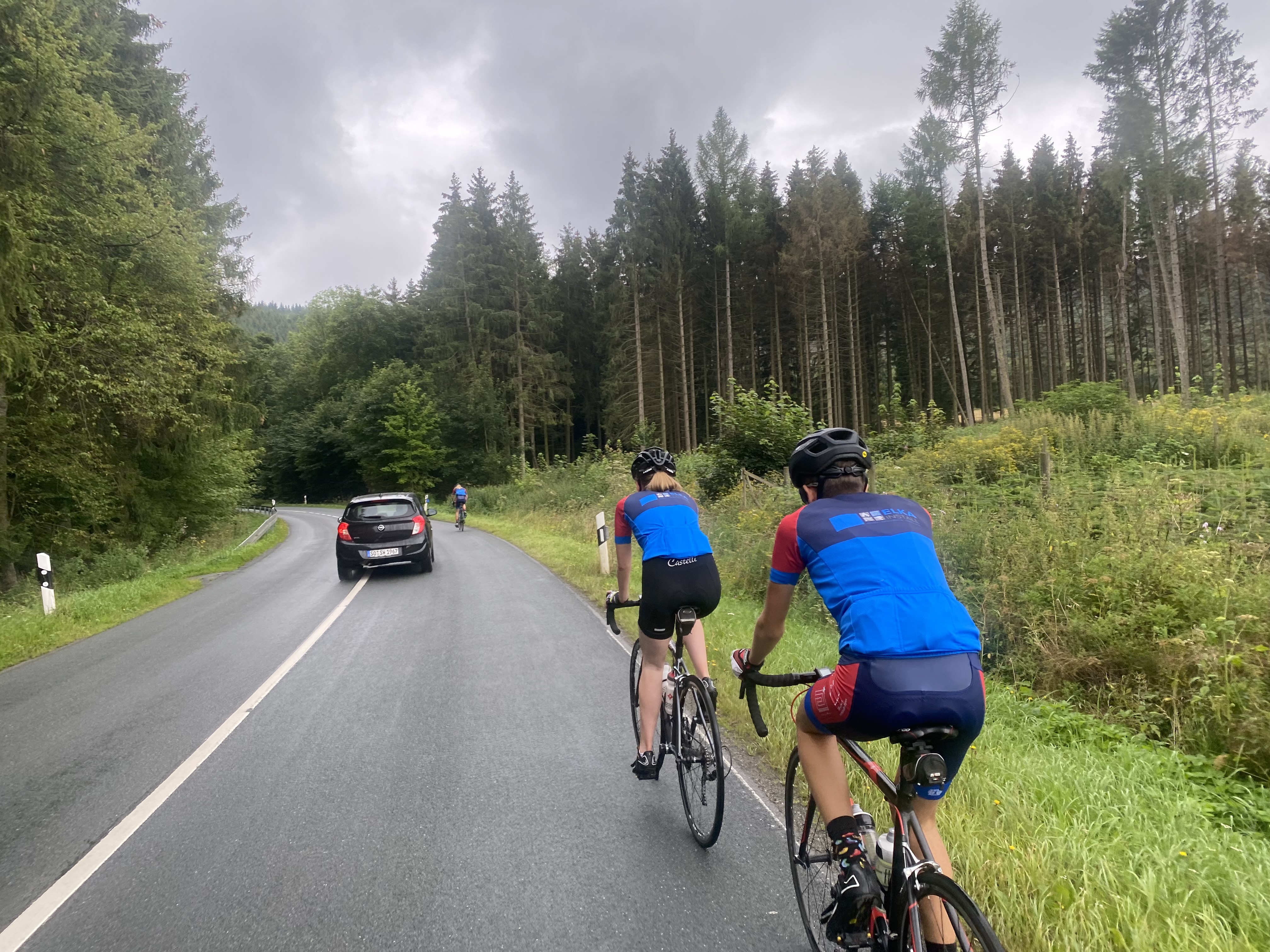 Na een gezellige autorit kwamen we mooi op tijd aan bij de jeugdherberg. Luc kwam rechtstreeks van zijn vakantie naar Willingen en stond al op ons te wachten. Iedereen moest bij aankomst zijn vaccinatie- of testbewijs laten zien, waarna we de sleutels voor de kamers kregen. We hadden bijna een heel gebouw voor ons zelf en konden ons meteen omkleden voor de eerste fietstocht. Een leuke ronde van ongeveer 60 kilometer door de Duitse heuvels. Het klimmen was even wennen weer, maar een mooie omgeving was het zeker. Eenmaal weer terug konden we meteen aanschuiven voor het eten, waarna we nog een rondje hebben hardgelopen en ge-elastiekt. Het douchen nam wat tijd in beslag omdat we drie douches moesten delen met 22 man, maar gelukkig scheen in Duitsland wél de zon dus konden we mooi wachten op onze balkons. ‘s Avonds was het tijd voor spelletjes, zoals altijd gezellig met z’n allen op één kamer.