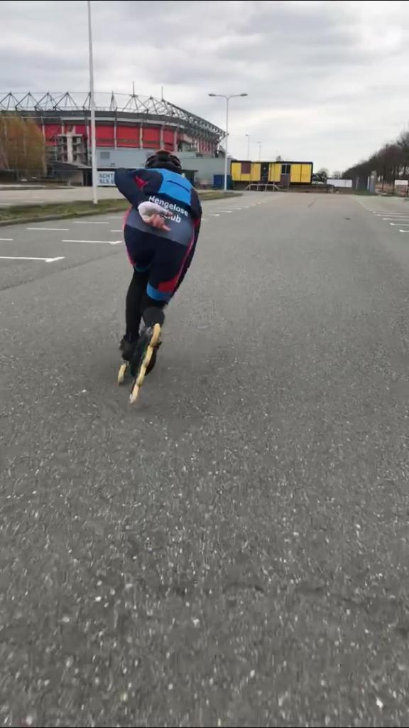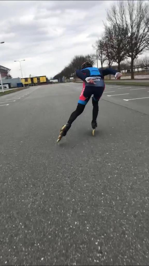 En dan sluiten we de week af met een skeelertraining op de vrijdag. Belangrijk daarbij is dat we tijdens deze training vooral oefenen met de schaatshouding (want skeeleren vereist toch echt een andere techniek dan schaatsten). De snelheid blijft vaak wat lager en ook hier is het vooral bezig zijn met balans en coördinatie. En dan is het alweer zondag en staat de volgende wielerbaantraining alweer voor de deur.