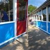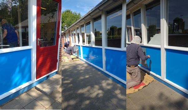 Het klusteam is druk bezig met het opknappen van de buitenkant van het clubhuis. De kozijnen zijn geschilderd. Ook de platen die aan de buitenkant zitten (kant van de tennisvereniging) waren ook erg toe aan een opknapbeurt, ze zijn omgedraaid, geschuurd en voorzien van een mooi blauw kleurtje. De rode buitendeuren zijn flink onder handen genomen en zien er nu weer super netjes uit.