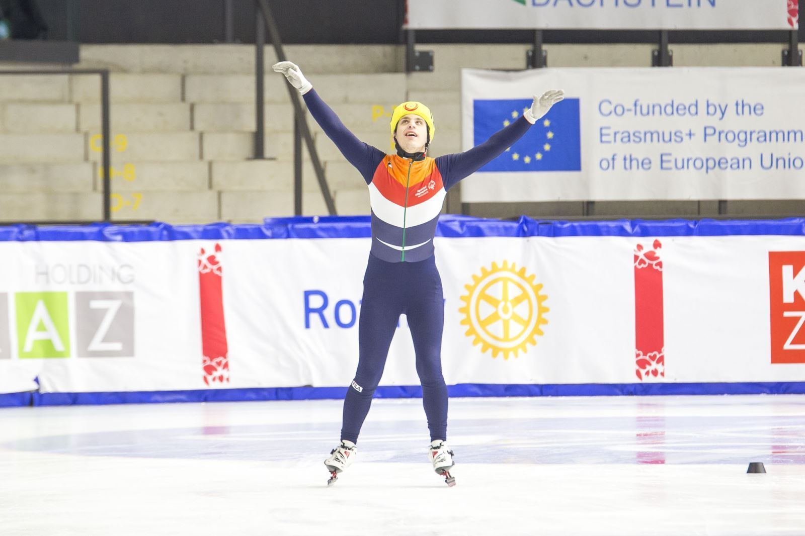 Clubgenoot Jarno is de hele week op het ijs geweest als assistent scheidsrechter. En als deelnemer aan het Unified Event: Relay. Hier schaatste hij met Apolo Ohno, voormalig shorttrack schaatser.