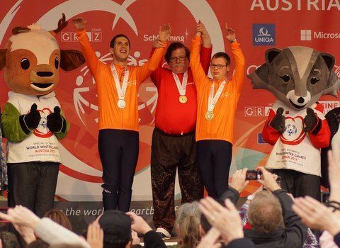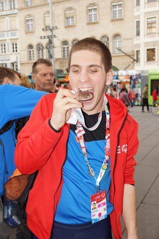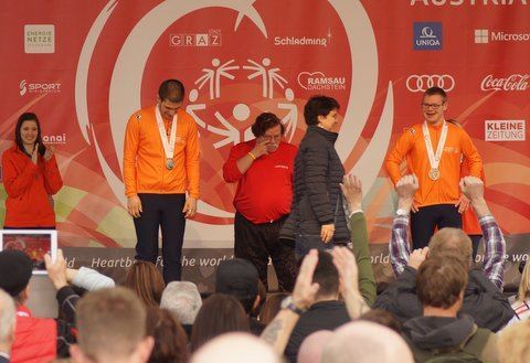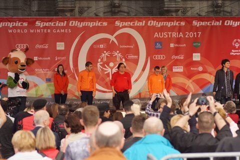 's Middags kreeg hij de medialle om gehangen op het Haupplatz in Graz onder toeziend oog van o.a. zijn trotse familie!
