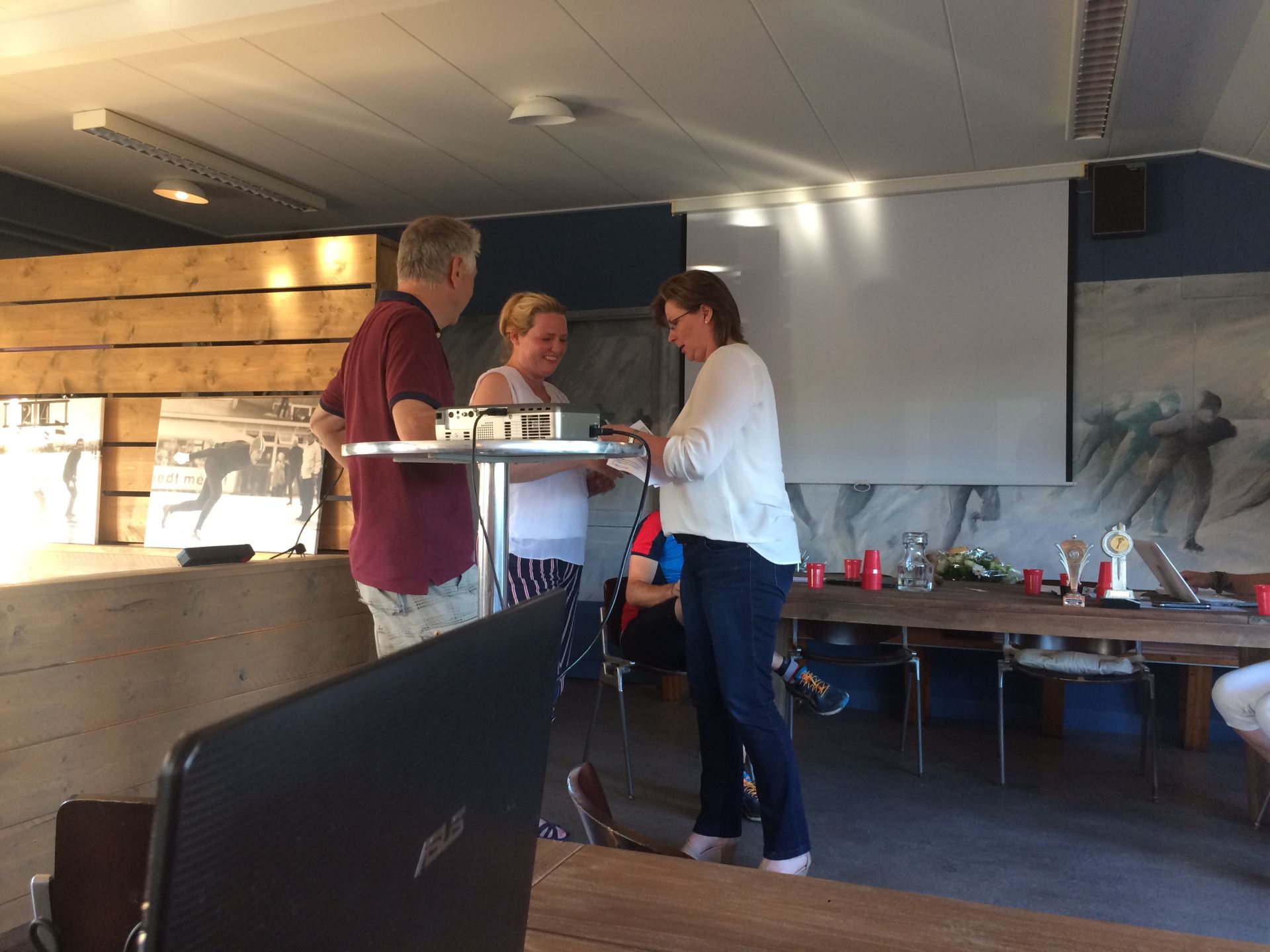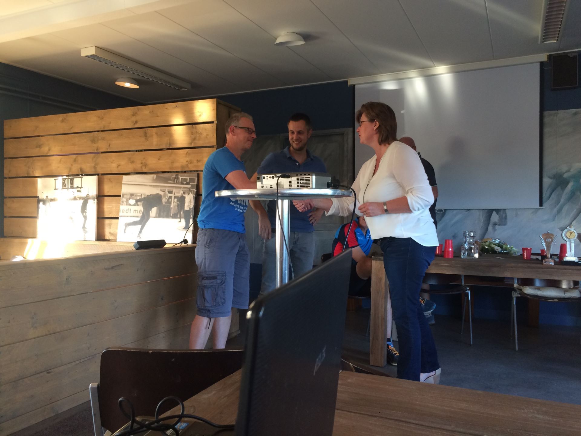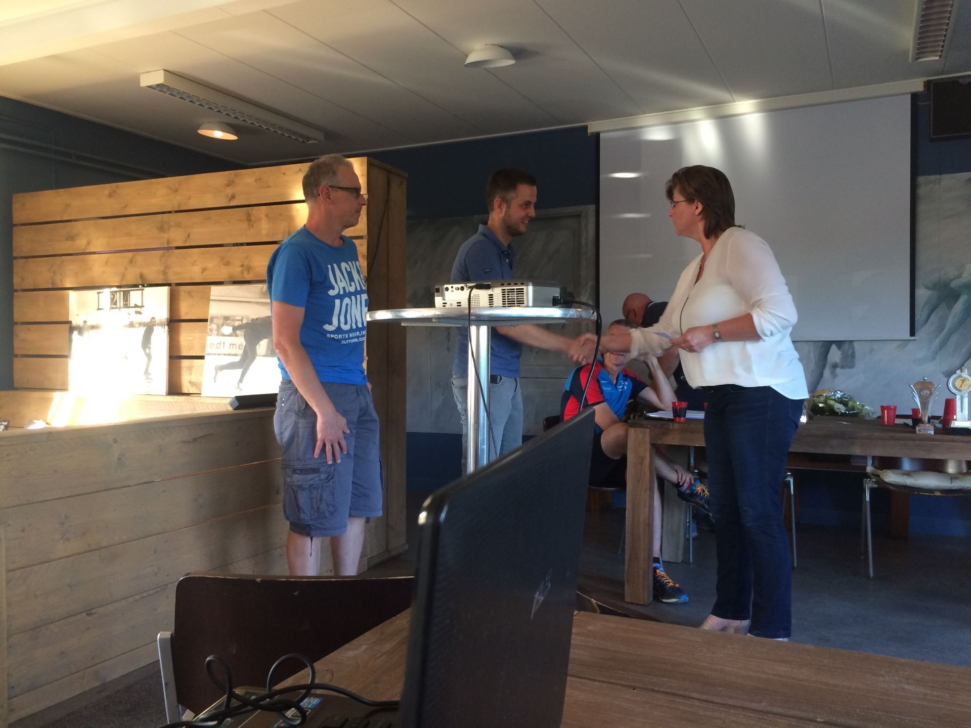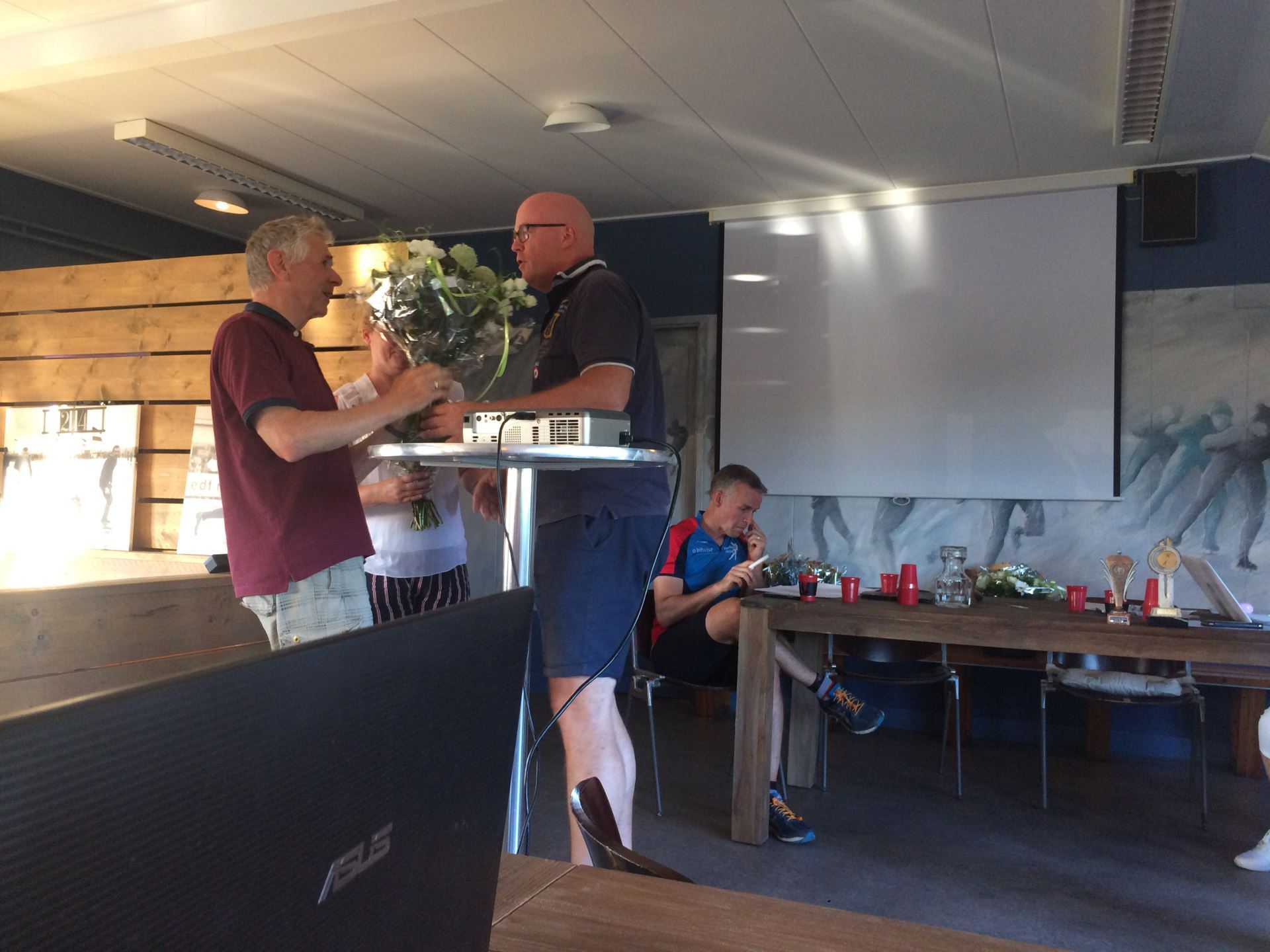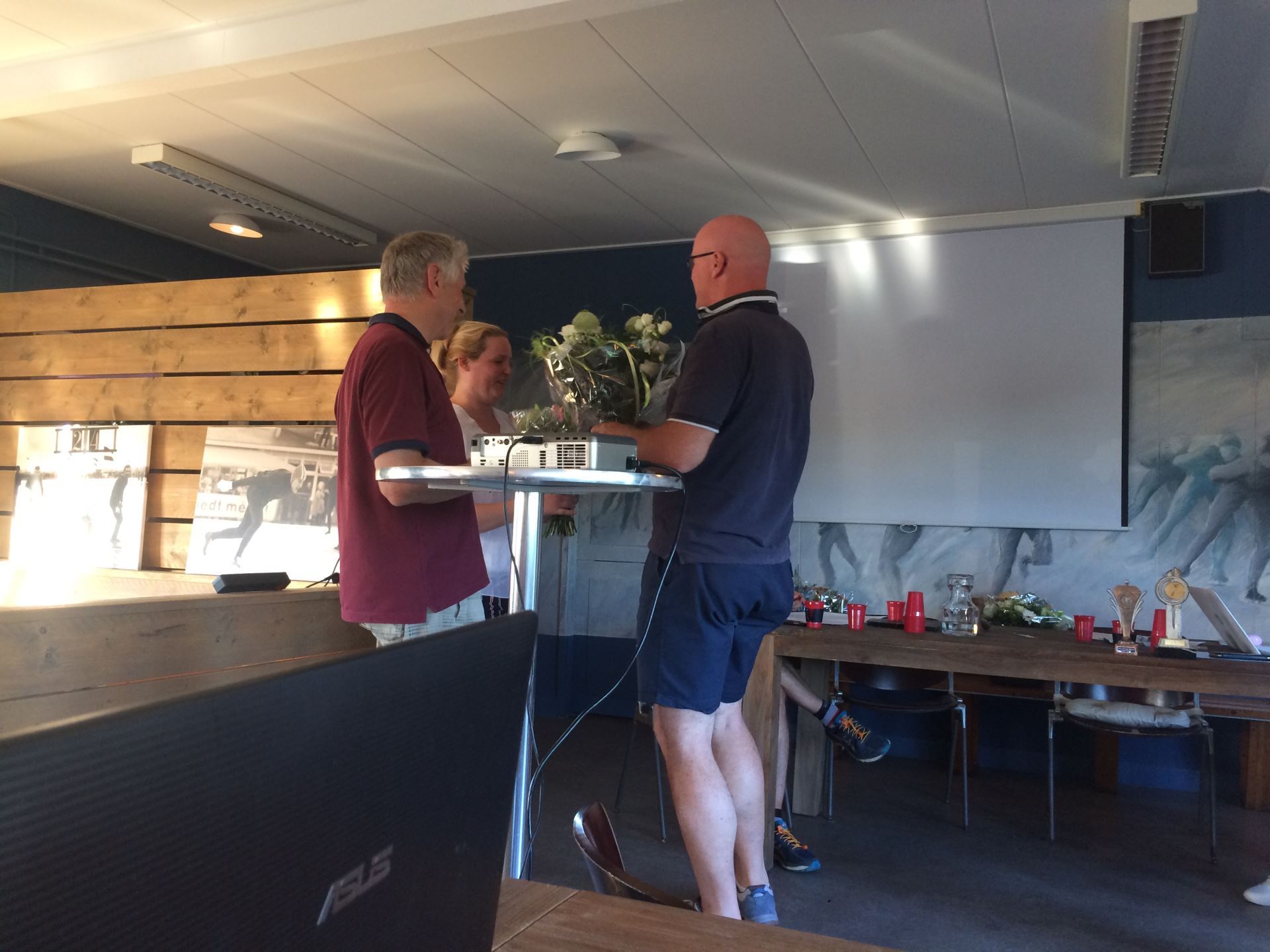 Hans Grootenhaar werd bedankt voor zijn inzet als looptrainer en Stefan ten Dam voor zijn werk als trainer van de marathongroep.