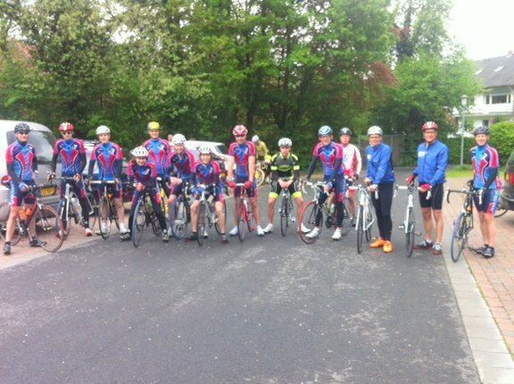 Aangekomen in Brochterbeck (een plaatsje vlak bij Teckelenburg) verzamelden we op een klein parkeerplaatsje waar de vorige keer ook verzameld werd. Daar hebben we toen alle fietsen uitgeladen en werden de laatste voorbereidingen getroffen. Toen was eindelijk het moment daar, vertrek. We waren alleen de parkeerplaats nog niet af en de eerste en gelukkig ook de laatste valpartij had al plaats gevonden. Het was gelukkig niks ernstigs dus we konden meteen verder.