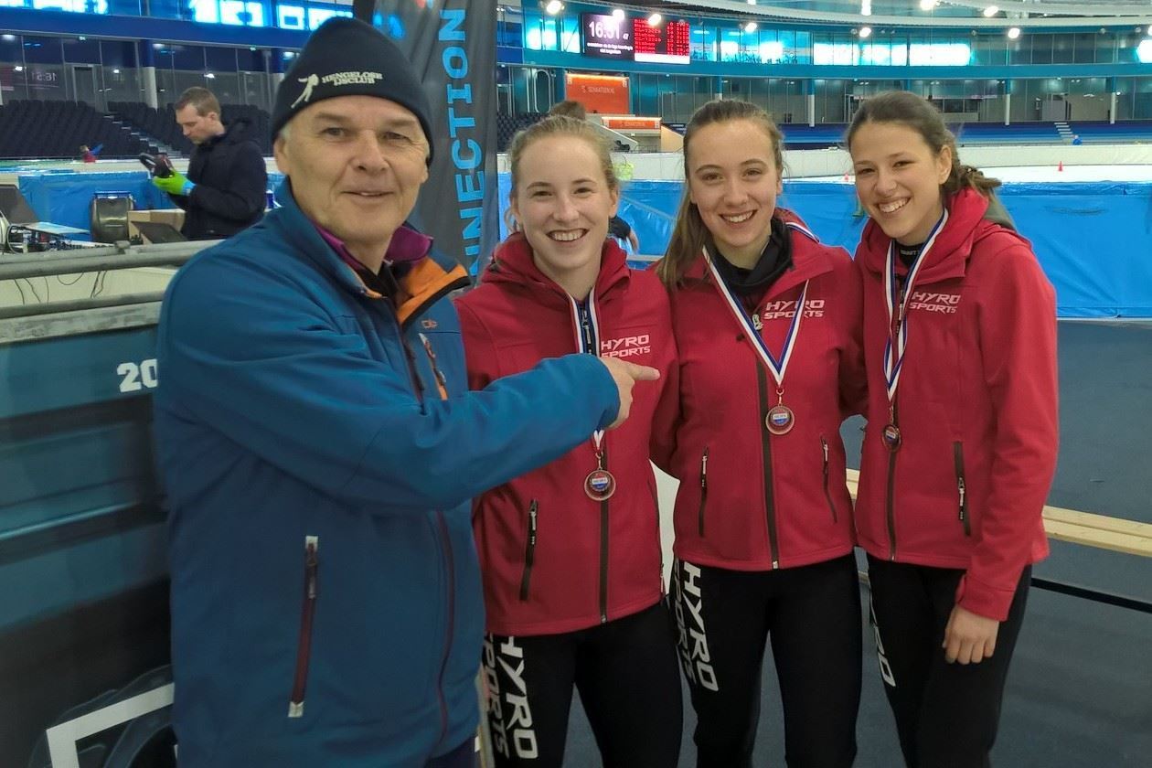 Maud Jongman, Roos ten Dolle en Tessa Huttenhuis werden gecoached door Jan Yntema. De wildcard van de dames was een mooie bonus. Hij kon voor hij met pensioen gaat toch nog naar het NK inThialf!