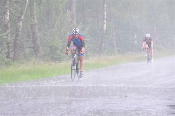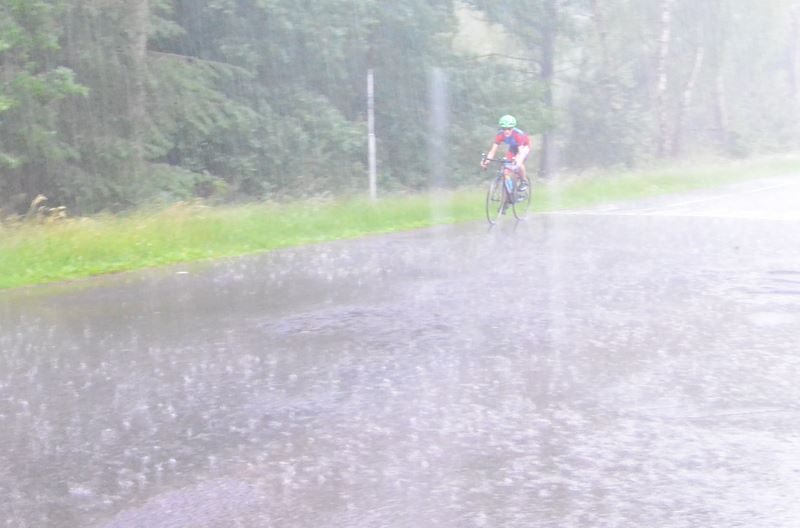 Daarna verschenen er echter donkere wolken waar al heel snel héél véél water uit kwam. En hagel. En bliksem. Het water stroomde over de straat. Echt noodweer, maar iedereen reed dapper door!