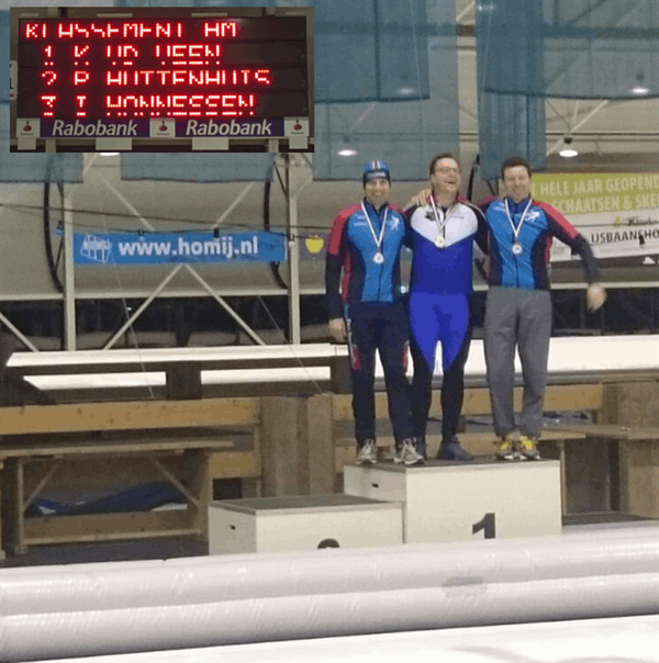 Ondertussen voltrok zich verder een verwacht scenario: Van der Veen reed een puike sprint; Patrick en Ivar niet. In elk geval wat minder dan de avond ervoor op het clubkampioenschap. Het contrast op de 1500 meter was nog groter. Alleszins redelijke tijden op zaterdag bleken volstrekt onhaalbaar op zondag. Jan-Anne reed nog acceptabel, maar voor spek en bonen. Patrick en Ivar waren zo’n vier seconden langzamer dan de avond ervoor. Ondertussen zag Van der Veen zijn kans schoon en reed – na Jan Anne – de tweede tijd met een dik PR. Het begon er penibel uit te zien.