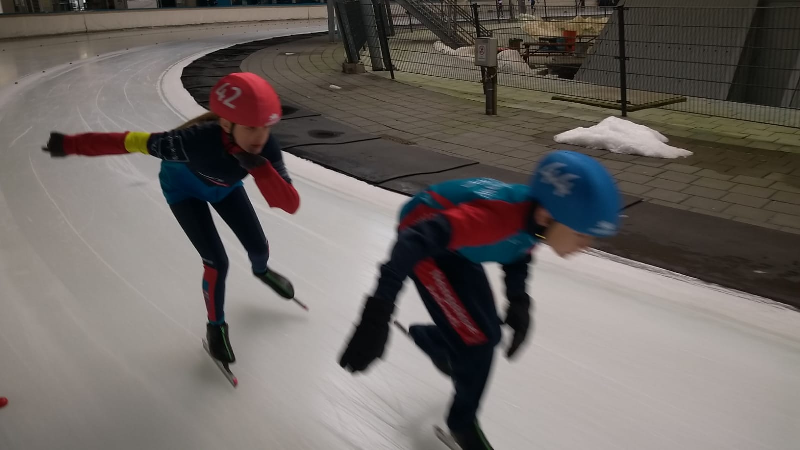 Iedereen moest hier verplicht met een helm schaatsen waar een mooi rood of blauw kapje overheen ging. Een waar spektakel, waarbij je je plekje in de groep goed moest verdedigen!