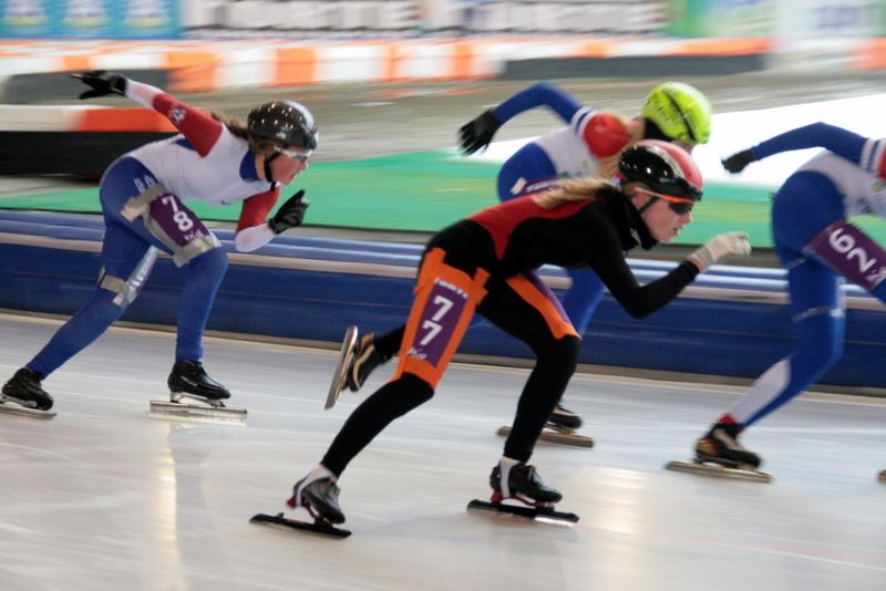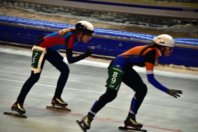 Maud Jongman stond bij de meisjes junioren C aan de start. Deze meiden moesten 15 ronden schaatsen en vooraf was Maud een beetje nerveus over dit groot aantal ronden. Maud had pech, want ze viel al in de eerste ronden van de wedstrijd. Ze stond echter snel weer op en ze kon weer redelijk snel de aansluiting met het peloton terug vinden. Ook in de finale kon ze zich prima handhaven. Ze sprintte naar een uitstekende vijfde plek.