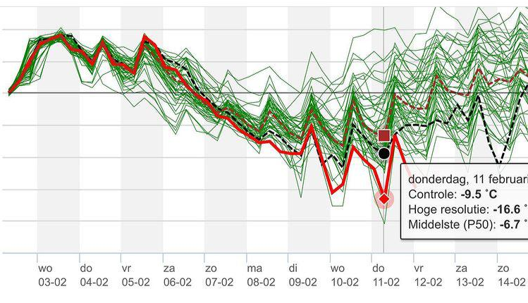 Op vrijdag 5 februari kijken we nog eens goed naar het weerbericht. Er wordt enorm veel sneeuw verwacht. Met sneeuw bevriest de baan niet goed en wordt het ijs heel slecht. Als we pech hebben kunnen we helemaal niet schaatsen.