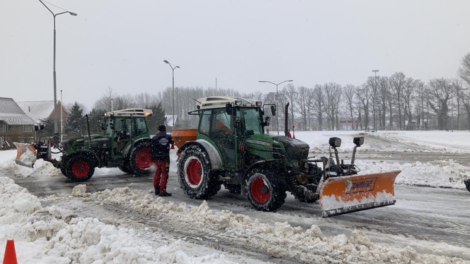Gildebor komt helpen met grote sneeuwschuivers en dankzij die trekkers hebben we de baan in een paar uur schoon. De putten kunnen worden afgedekt en de pomp kan weer aan.