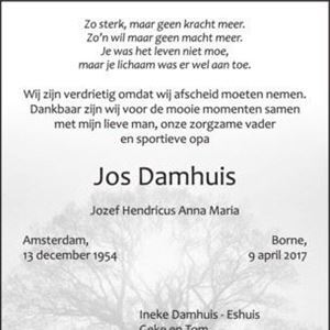 Onlangs is op 62 jarige leeftijd ons bestuurslid Jos Damhuis overleden. Ter nagedachtenis aan Jos heeft Jan Engelbertink een stuk geschreven.