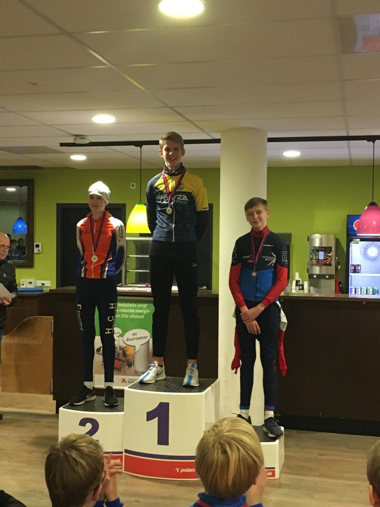 Het ijs in Groningen voelde zwaar voor onze rijders maar toch trapte Stijn de wedstrijd af met een nette tijd op zijn allereerste 500m en een knap PR op de 300m. Tom kwam op de 500m twee tiende tekort maar maakte dat op de 300m wel goed met een PR. Eloise reed voor het eerst een 500m en 700m en vond vooral het wisselen spannend. Dat ging echter hardstikke goed en ze zette een mooie tijd neer op de 500m, helaas viel ze op de 700m vlak voor de finish. Edsger zat op de 500m zestiende boven zijn PR maar reed er maar liefs zes seconden af op de 700m. Alicia opende hard op de 500m maar kwam helaas in de laatste bocht ten val, waarbij ze zich flink bezeerde. Op haar eerste 1000m revancheerde ze zich knap, na opnieuw een sterke opening. Twan zat op de 500m maar één honderdste boven zijn PR en reed zijn eerste kilometer ruim onder zijn gestelde doel van 2 minuten. Jildou’s 500m liep niet echt lekker maar op de 1000m bleef ze maar twee tiende boven haar PR. Roan traint sinds dit jaar mee met de wedstrijdgroep en hoopte op het podium te kunnen rijden. Zowel bij de 500m als de 1000m reed hij de derde tijd en mocht dus een bronzen medaille mee naar huis nemen.