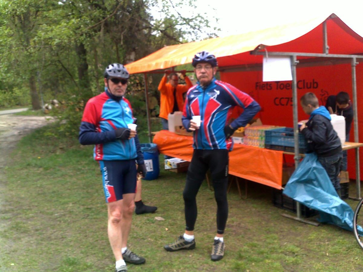 Dan inschrijven en starten maar. In het gezelschap van twee illustere figuren vertrekken we richting Wierden, Zenderen en via Deldenerbroek weer terug naar……. de Holterberg. Bij het Schwartzwald is er een verzorgingspost waar we dankbaar gebruik van gemaakt hebben want het laatste stuk was wel erg veel wind tegen die volgens ons ook een groot deel van de tocht tegen ons was en zelfs in kracht toenam. Op de Holterberg begint in elk geval de zon te schijnen en hebben we even de beentjes getest. We konden de teller niet hoger krijgen dan 54,7 maar ja. We hebben ook stukken gehad met die wind van 22 km per uur. Dus ons gemiddelde wat redelijk.