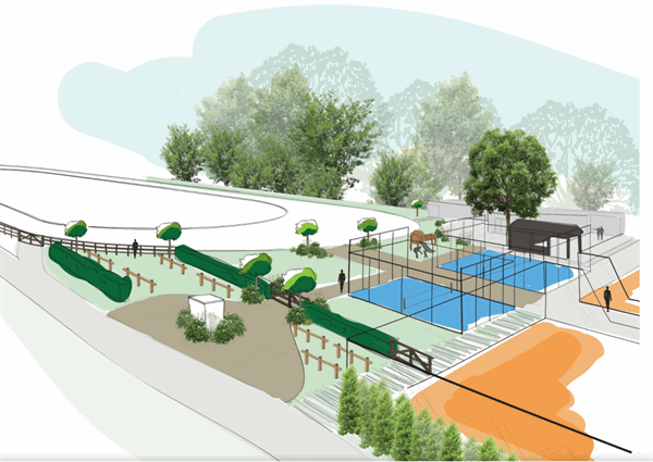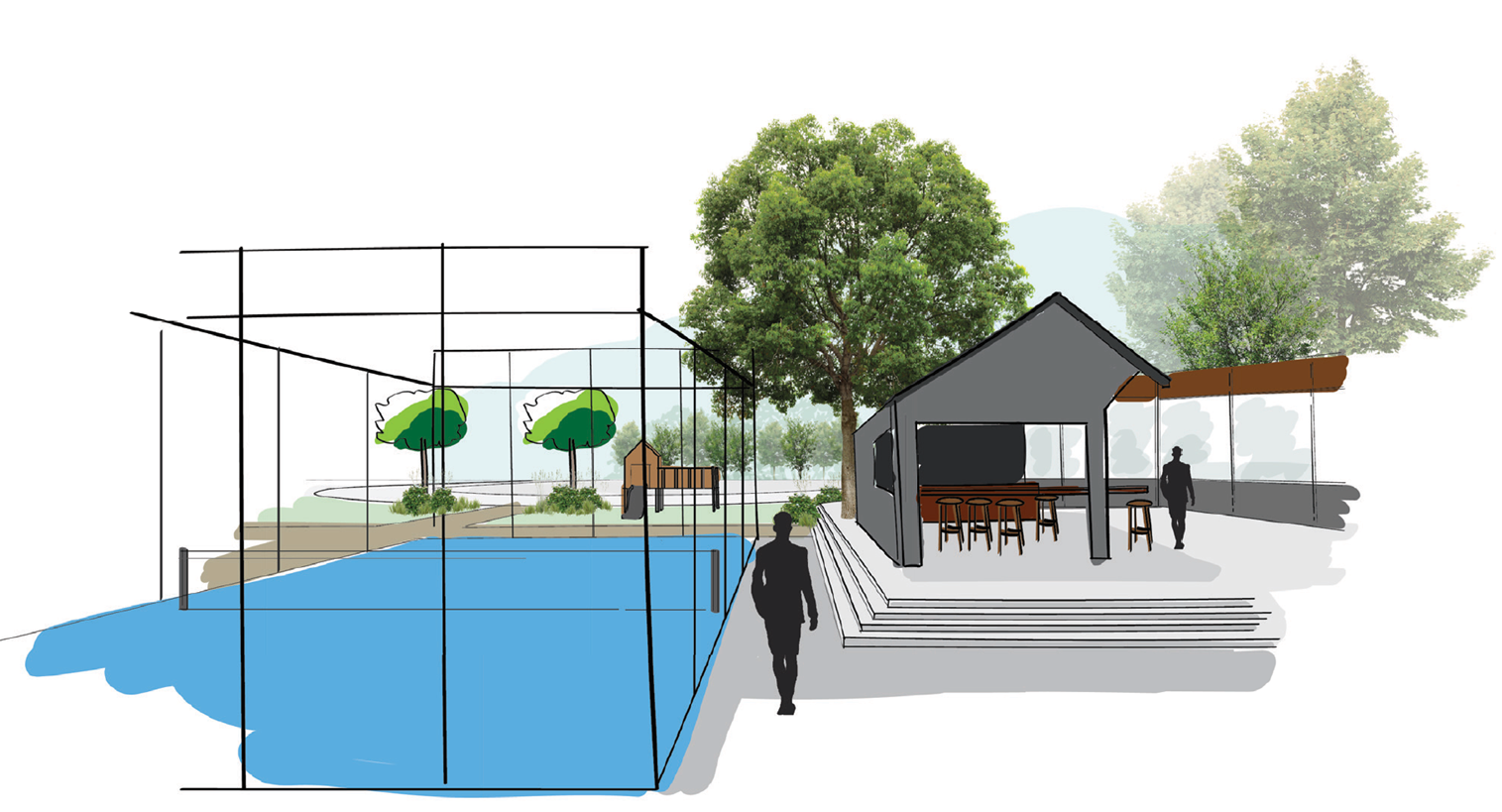 Inmiddels zijn er al meerdere gesprekken geweest tussen HIJC en tennisvereniging Weusthag en is het plan ontstaan om te onderzoeken of het haalbaar is om de kleedruimten van de tennisvereniging, onze schuurtjes, onze containers (waar oa de Zamboni in staat) en ons clubhuis af te breken en een nieuw clubhuis voor HIJC (linkerkant van donker grijze gebouw op de tekeningen) te bouwen en uiteraard ook de padelbanen voor tennisvereniging Weusthag.