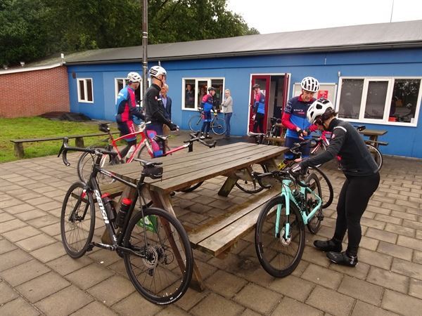 Helaas waren de weergoden ons dit jaar minder goedgezind. De voorspellingen waren niet heel goed waardoor de afmeldingen voor het fietsen langzaam binnendruppelden. Toch waren er nog acht diehards die de 100 kilometer fietsen en drie diehards die de 60 kilometer route name. Gelukkig viel het voor de fietsers het eerste gedeelte nog enigszins mee, maar alsnog kwam iedereen drijfnat in het clubgebouw aan. Daar stond de koffie en thee klaar en kwam ook al snel de pasta aan. Intussen kwamen alle afmelders voor het fietsen binnen, want iedereen kwam nog wel gezellig mee-eten. Zo werd het al met al een geslaagde dag, waarvoor dank!