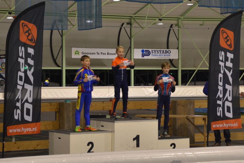Rens Gosselink kwam als enige pupil van de HIJC naar deze marathonwedstrijd. Hij moest zich dan ook alleen in het peloton staande weten te houden tussen de andere schaatsclubs. Hij behaalde na zes rondes knap een derde plaats!
