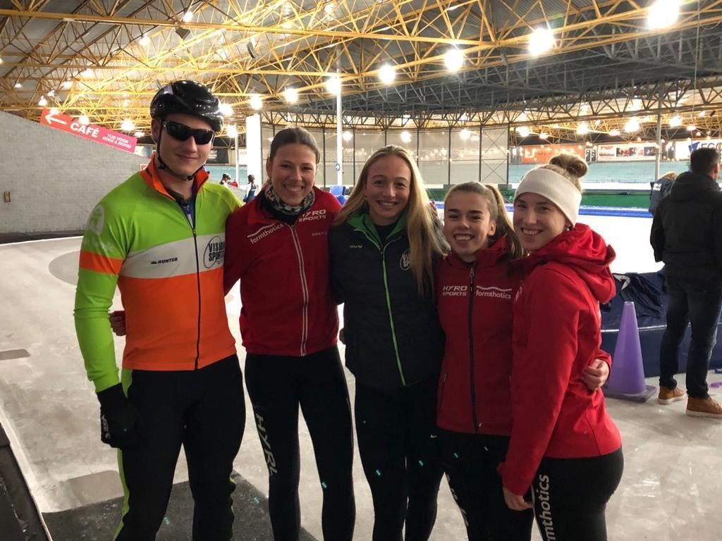 Boika Maas, Tessa Huttenhuis, Amée Hollanders, Jade Groenewoud en Maud Jongman reden op de Uithof in Den Haag een 500 - 1000 meter en deden ook mee met een teamsprint.
