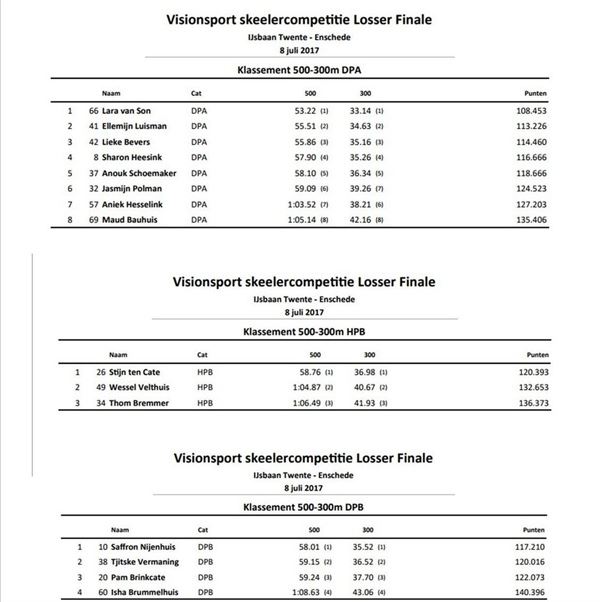 Uitslagen Vision Sports Skeelercompetitie Losser Hier zijn de uitslagen van de finale van de Vision Sports Skeelercompetitie, die afgelopen zaterdag 8 juli werd verreden . Brigitte Huttenhuis zondag 16 juli 2017 Aantal weergaven (5476) Trefwoorden: skeelerwedstrijd Documenten om te downloaden Visionsport skeelercompetitie Losser Finale - klassement - Distance Combinations (2)(.pdf, 93,94 KB) - 1363 download(s) Mocht u het niet eens zijn met de publicatie van een foto kunt u dat per e-mail kenbaar maken aan de webmaster (webmaster@hijc.nl). De foto wordt dan zo snel mogelijk verwijderd.