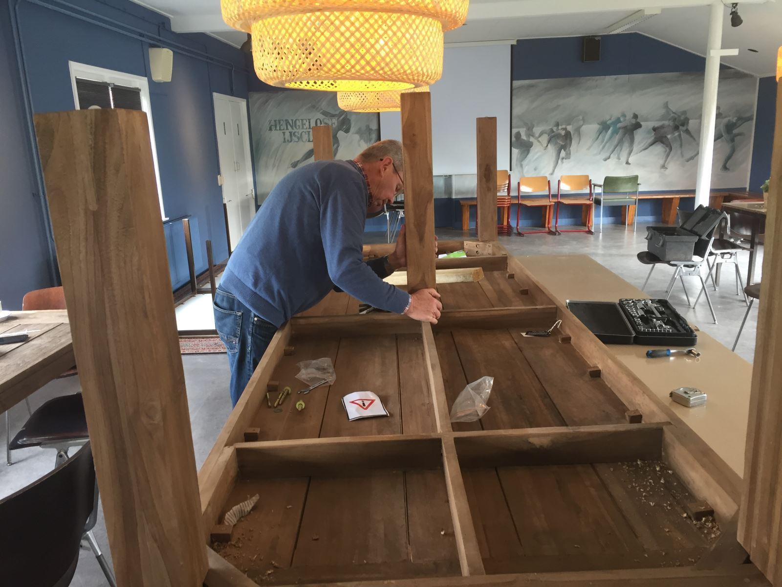 Er is opnieuw hard gewerkt aan het clubgebouw. Nu staan de prachtige nieuwe tafels op hun plek.